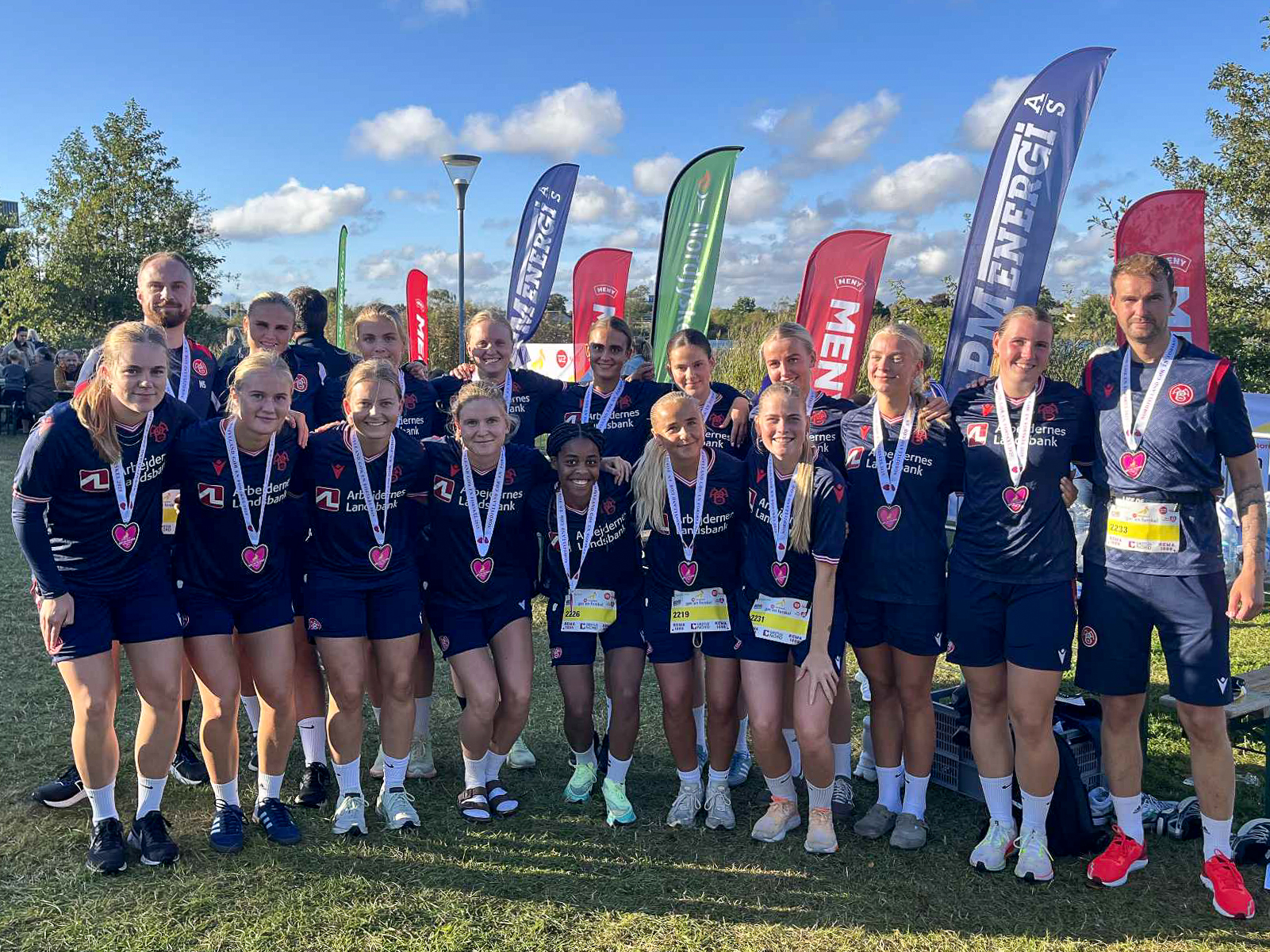 AaB Women trak løbeskoene på og deltog i Stine Rex’ 1000 km-udfordring i Aabybro. Og ja – billedet er naturligvis taget af Thomas Augustinussen, der klarede kameraet lige så sikkert som sine afleveringer på banen.